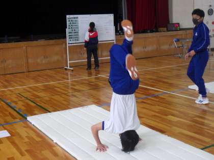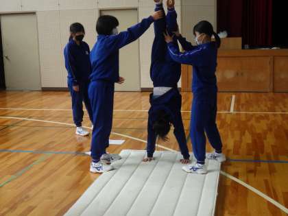 2年生の体育・マット運動の授業の様子です。