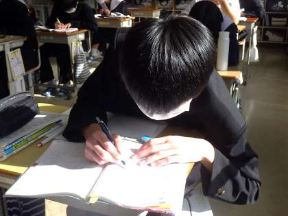 円の性質のまとめの演習問題に取り組んでいました。教科書の問題、テキストの問題、タブレットの問題…、自分の力を確かめるため、問題の順番なども工夫しながらたくさん解いていました。