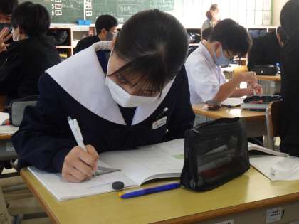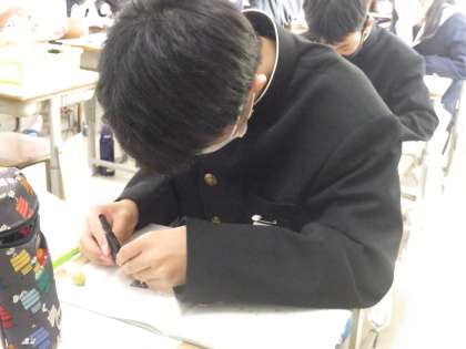 垂直二等分線、角の二等分線の作図の仕方を学んでいました。手順をしっかり覚えておかないと、正確な差空ができません。そのため、真剣に学習に取り組んでいました。