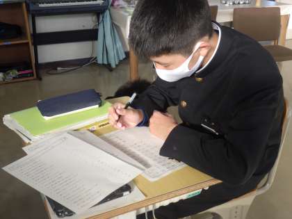 漢字の学習に取り組んでいました。丁寧な字で繰り返し描き込んでいきますが、いつも見ている練習の順番とは少し違いました。定着を図るための教科担任の工夫です。