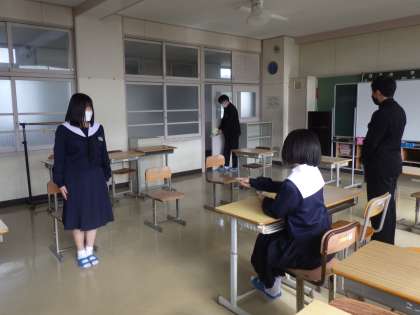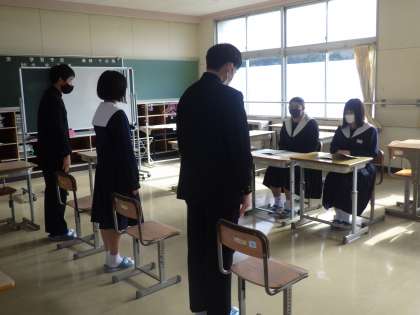 3年生の学活では、入試対策として面接練習が行われていました。