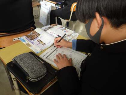 前回まで行われていた地理の学習を一区切りさせ、今日からは歴史分野の学習です。久しぶりの歴史は、ヨーロッパの近代についてです。当時の主な出来事を洗い出し、その時代の大きな流れをつかんでいました。