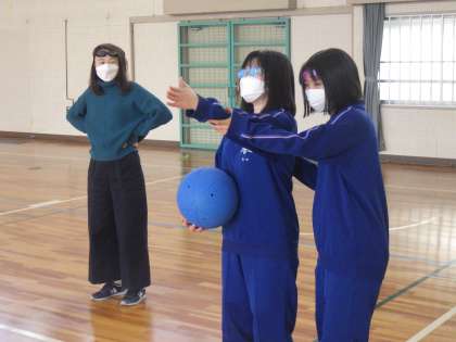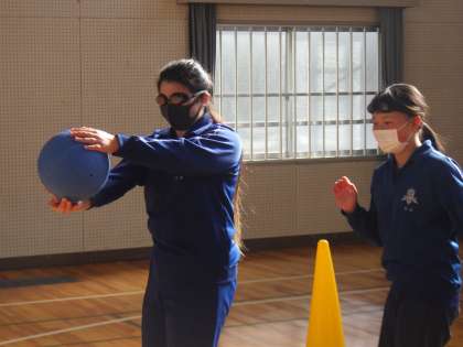昨年度も実施していることから、今日はさっそくゲームが行われていました。ボールの中からかすかにする鈴の音だけを頼りに、得点を取られないよう防御に必死です。一方、攻め側は仲間の指示をよく聞き、投げる方向をイメージしながら得点をねらっていきます。