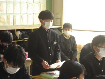 「売買契約時の問題発生原因や予防法を知る」という少し難しい課題で学習が進められていました。しかし、「生活にリンク」と名付け、実際の生活場面で考えらる状況まで落とし込むという教科担任の工夫があり、生徒は真剣に考え、積極的に発言をしていました。
