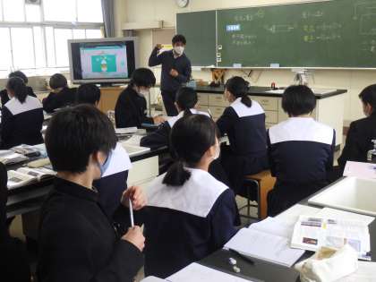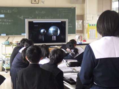 「電流と電子」について学んでいました。前回の授業で行った実験の様子を思い出し、電流が+から−に流れること、電子は−からプラスに流れることを映像で確認していました。