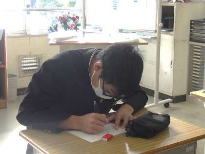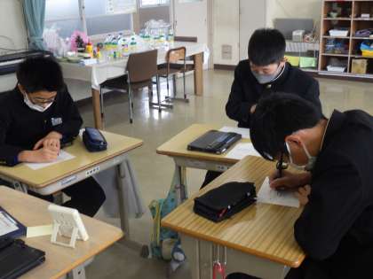 授業での話し合いをもとに、人権標語に取り組んでいました。