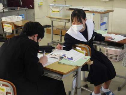 異性のことについて考える内容だったので、なかなか自分の意見を言いづらいかと思いきや、近くの仲間との意見交換では、男女問わずいつも通り考えを伝えあっていて安心しました。
