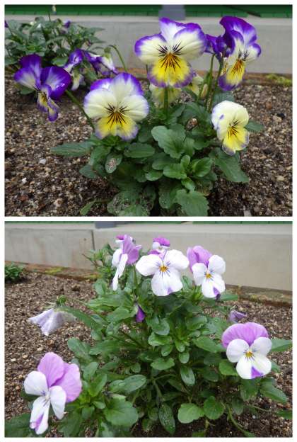 体育館前の花壇には、今年もたくさんのパンジーが植えられています。ただ、今年のパンジーは現在、非常に葉の数が多く元気に育っているように思います。これから本格的になる寒さに十分耐えていける蓄えをしているようで少し安心しています。