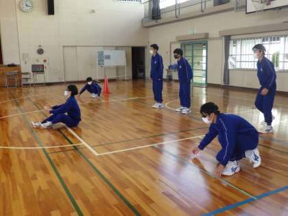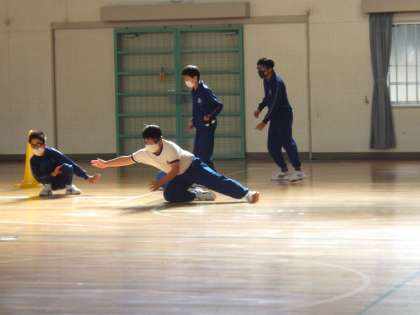チームの対抗戦を行っていました。目隠しをした状態では何も見えませんが、ボールからかすかにする鈴の音や仲間からの指示で体を動かしていきます。公式球のため無意識で体に当たると痛みを感じる硬さですが、仲間のことばを信じて、防御するために思いっきり体を動かしています。