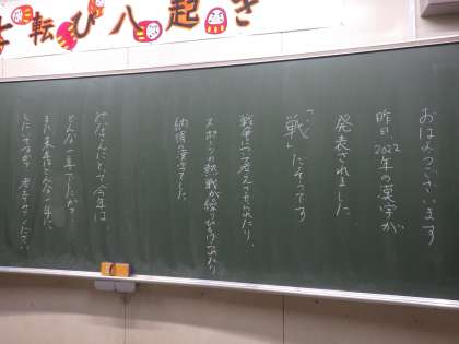 昨日発表された今年の漢字『戦』についてのものです。戦争について考えたり、スポーツイベントでの熱戦などに触れ、今年一年の振り返りと来年をどんな一年にしたいか考えさせるものでした。