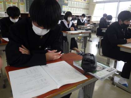 昨日実施された学習診断テストの解説が行われていました。特に難しかった問題や間違えやすい問題について、解き方や答えの導きだし方を確認していました。