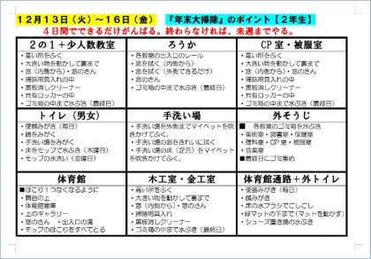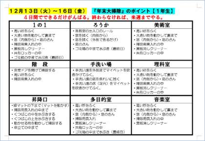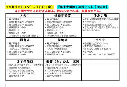 環境美化委員会が中心となって今日から始まった「年末大掃除」の様子です。