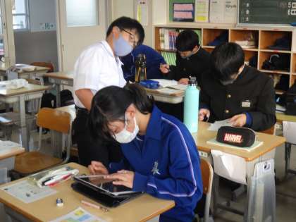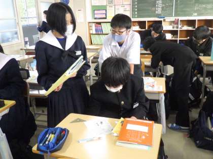3年生を見習い、この時間でも取り組める小テストが用意されました。プリントの答え合わせを仲間同士で行っったり、自分で教科書やタブレットで行っていました。