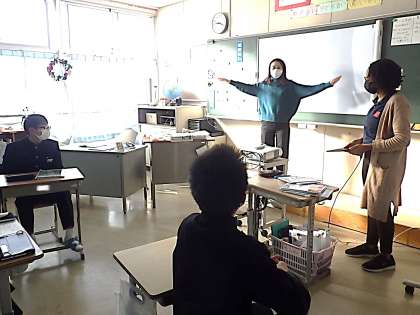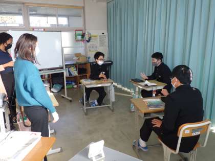 今日はALTとのコミュニケーション活動の授業でした。生徒、先生全員参加でのゼスチャーゲームです。答えが分かっても英語で答えなければならず、ゼスチャーを使って何とか答えようと必死です。途中、授業の様子を見に来た校長先生にも、出題として参加してもらっていました。