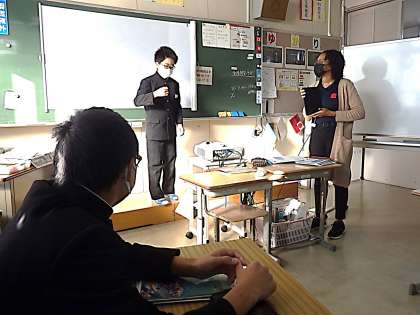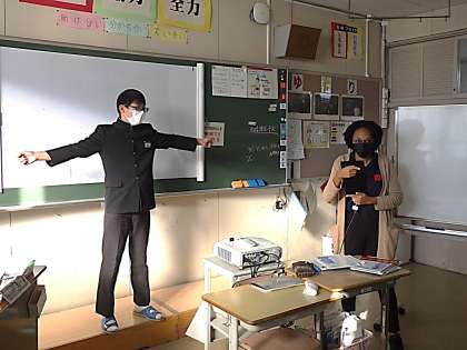 今日はALTとのコミュニケーション活動の授業でした。生徒、先生全員参加でのゼスチャーゲームです。答えが分かっても英語で答えなければならず、ゼスチャーを使って何とか答えようと必死です。途中、授業の様子を見に来た校長先生にも、出題として参加してもらっていました。