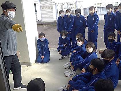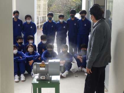 木材加工の学習で、今日は切断後の処理の仕方を学んでいました。新しくベルトサンダーという電動ヤスリの使い方を確認したあと、さっそく作業に取り掛かっていました。
