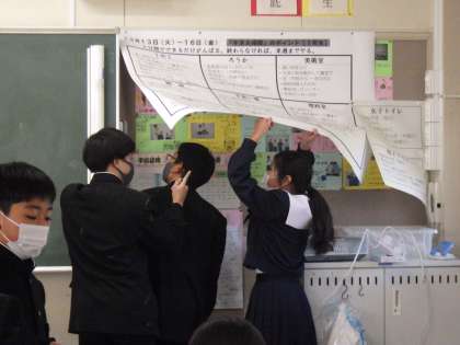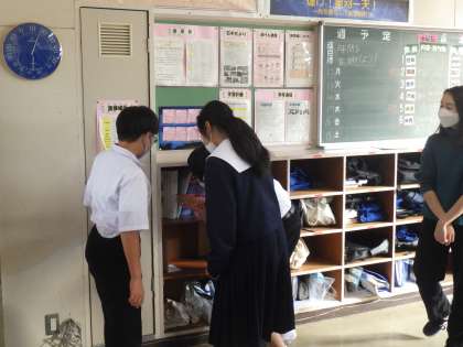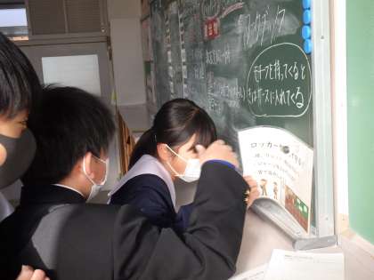 仲間と協力しつつ、隠された質問カードを探し回る生徒の姿が印象的でした。