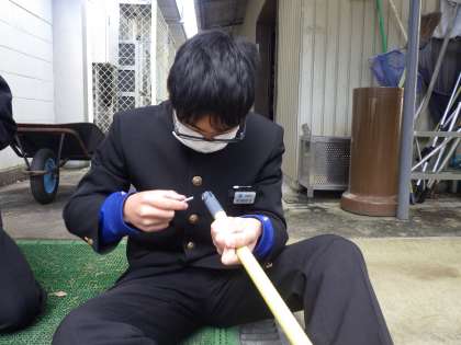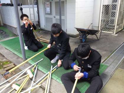 校内整備の中心的な存在である校務主任の先生。この時期であれば落ち葉掃除や年末の大型ごみの処理に追われます。そんな忙しさの増す時期になると、きまってボランティアの生徒たちが助っ人にやって来ます。