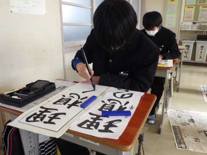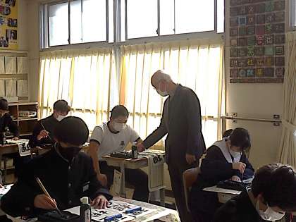 冬休み明けすぐに実施される書き初め大会に向けの練習が始まりました。今日は書道ボランティアさんにお越しいただき、一文字ずつ丁寧にポイントを教えていただきました。
