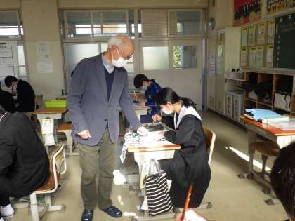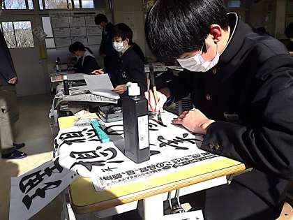 冬休み明けすぐに実施される書き初め大会に向けの練習が始まりました。今日は書道ボランティアさんにお越しいただき、一文字ずつ丁寧にポイントを教えていただきました。