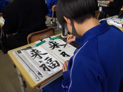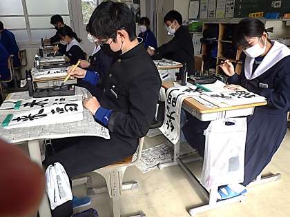 冬休み明けすぐに実施される書き初め大会に向けの練習が始まりました。今日は書道ボランティアさんにお越しいただき、一文字ずつ丁寧にポイントを教えていただきました。