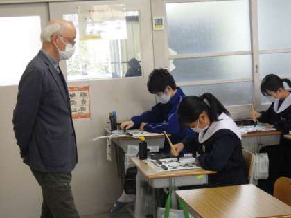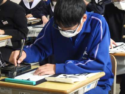 冬休み明けすぐに実施される書き初め大会に向けの練習が始まりました。今日は書道ボランティアさんにお越しいただき、一文字ずつ丁寧にポイントを教えていただきました。