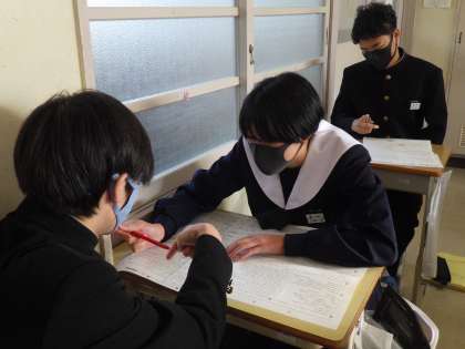 先回行われた「最上級・比較級」の単元の確認テストの解説が行われていました。間違えた部分を見直し、しっかりと学びの確認をしていました。