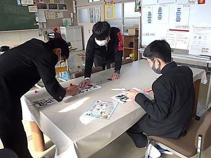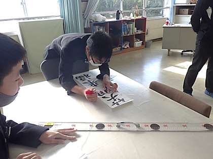 昨日行われた書道ボランティアによる書き初めのポイントをまとめていました。手本に補助線を引いたり、教わったポイントを描き込んだりしています。来週もう1回、ご指導の日があります。今後の練習に向けて、準備を着々と進めていました。
