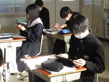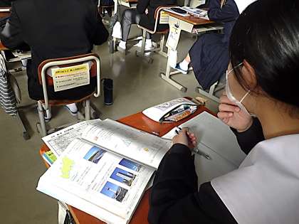 三平方の定理を利用した問題に挑戦していました。富士山の頂上から見渡せる範囲を求めていきます。地球の半径、富士山の高ささえわかれば、計算で求めることができます。答えはおよそ220km。気象条件や建物などの影響により、実際にはこの数字よりも少なくなりますが、計算上ではこれくらいは見えるということです。