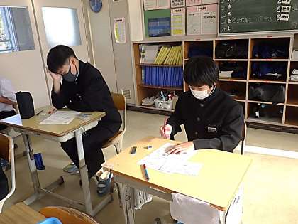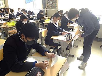 「力のはたらき」についての単元テストが行われていました。テスト後は、間違えてしまった問題を教科担任や仲間と確認しています。来年2月には、学習診断テストや学年末テストの範囲にもなる単元です。冬休み中もしっかりと復習に力を入れてほしいと思います。