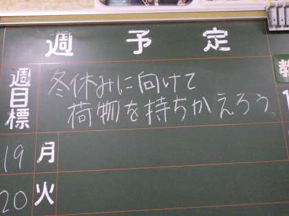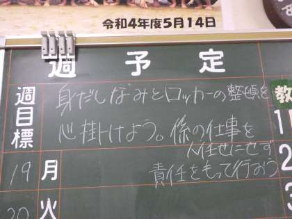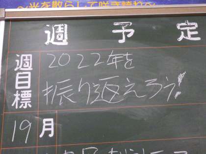 各学年の週目標には、2022年の最終週にふさわしい目標が掲げられていました。どの学年も仲間と考えた目標を意識して生活してほしいと思います。