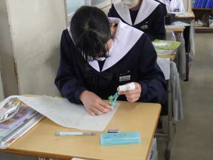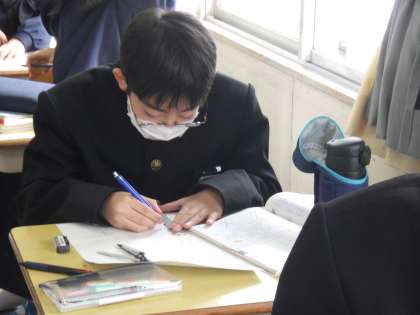 平面図形の復習として、単元プリントに取り組んでいました。作図の仕方などを振り返りながら解いています。今日は、問題文が何を解答として要求しているかを確認しながら進めることができていたようです。今後のテスト対策にも一役買っていました。