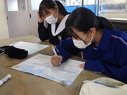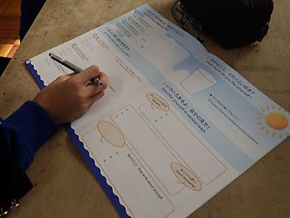 テキストに自分の好きなことを書き込んだり、仲間や先生に伝えたりしています。