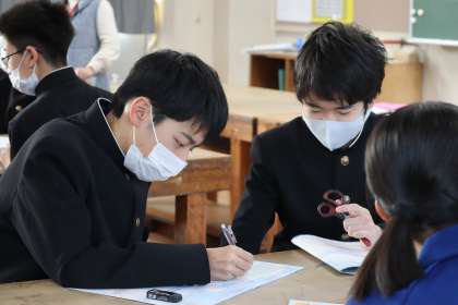 テキストに自分の好きなことを書き込んだり、仲間や先生に伝えたりしています。