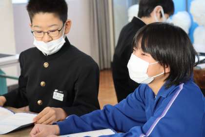 テキストに自分の好きなことを書き込んだり、仲間や先生に伝えたりしています。