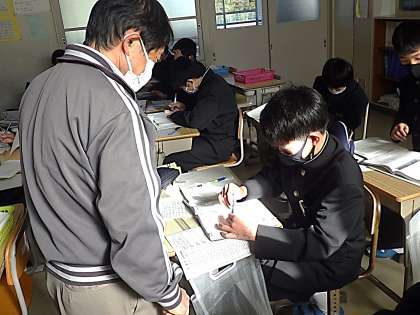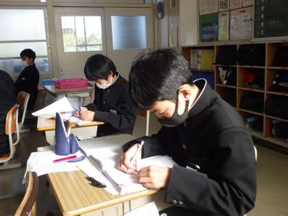 冬休みを明日からに控え、家庭でも一人で学習できるようにと、平面図形の総復習が行われていました。教科書に出題されている様々なパターンの問題に、これまでの授業を思い出しながら取り組んでいました。
