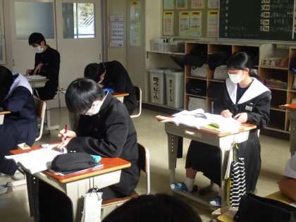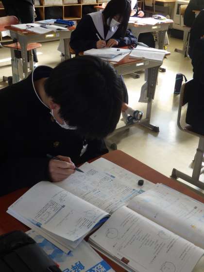 三平方の定理の応用問題に挑戦していました。やっぱり受験生。集中の度合いがケタ外れです。