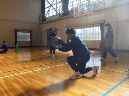 今年度、全学年を通して最終回となったゴールボールの授業。男女混合のチームで協力し合い、白熱したゲームが繰り広げられました。
