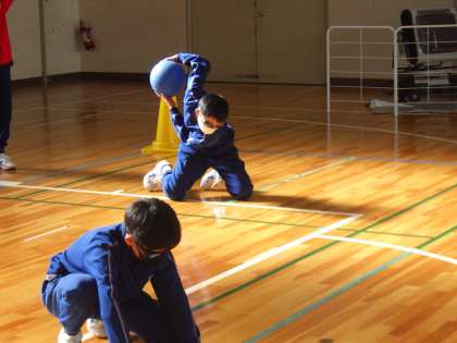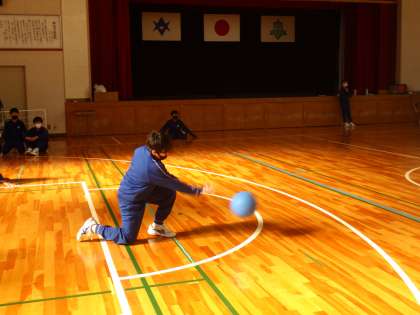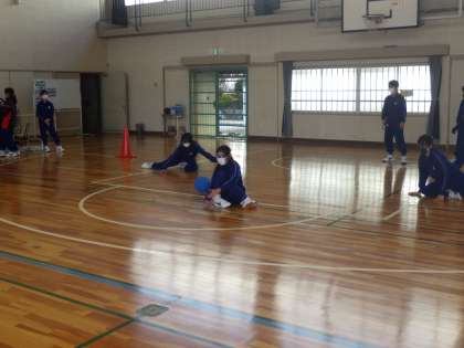 今年度、全学年を通して最終回となったゴールボールの授業。男女混合のチームで協力し合い、白熱したゲームが繰り広げられました。