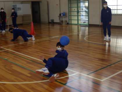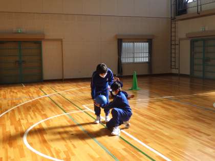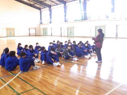 今年度、全学年を通して最終回となったゴールボールの授業。男女混合のチームで協力し合い、白熱したゲームが繰り広げられました。