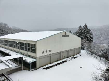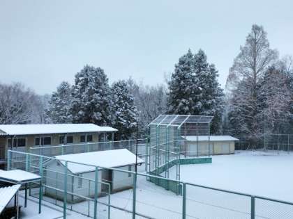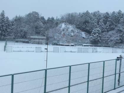 灰色の雪雲はなくなり、少し明るくなってきたように感じます。また雪の勢いも収まり、細かな雪が深々と降り続いています。