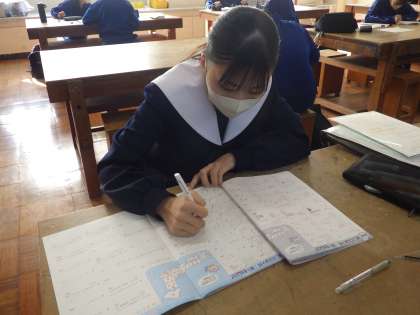 昨日よりも多い生徒が参加し、合同で各自が冬休みの課題に一生懸命取り組んでいました。仲間と一緒でも相談することはほとんどなく、間に10分の休憩をはさんだだけで、50分を2コマ、通常の授業よりも集中して(?)取り組んでいました。