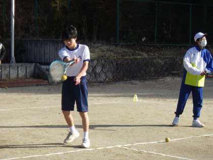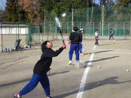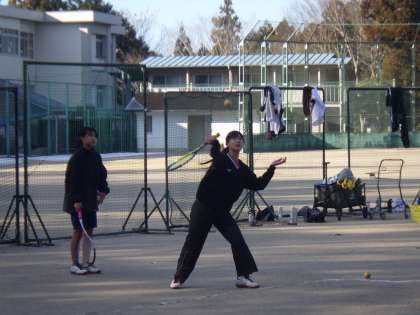今日の練習で年内は最後。初めは冷たい空気、カチカチに凍ったコート、思うように跳ねてくれないボールに苦戦していましたが、次第に体も温まり、気温も高くなってきたため、いつも通り元気のよい声がよく響いていました。