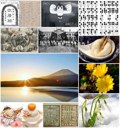 1873年の1月1日に太陽暦が施行されたことを記念した「太陽暦施行の日」です。太陽暦が採用されたことで1年は365日になり、4年に1度はうるう年として366日になることが定められました。