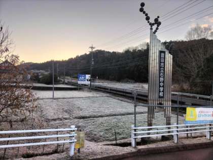 今朝は久しぶりの寒さとなりました。車の気温計も「−3度」を示していました。学校に到着すると、国道沿いの畑は白く、霜が降りていました。
