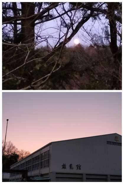 7時少し前…。西の空にはまだ月が見えますが、東の空は次第に明るくなり始めています。月が沈めば日が昇るのは当たり前ですが、時間にあまり差がないことに少し不思議な感覚になります。