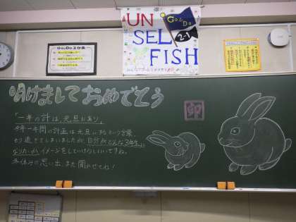 生徒たちの久しぶりの登校に合わせて、各担任が黒板にメッセージを書いて出迎えます。