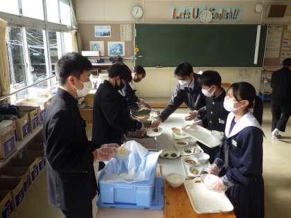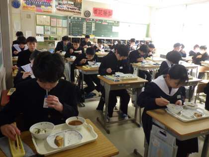 手際よく準備をし、校内で一番早くいただきますをした2年生。休み明けでもしっかりと活動する姿は健在。明後日から始まる自然教室に向けても準備はバッチリのようで安心しました。