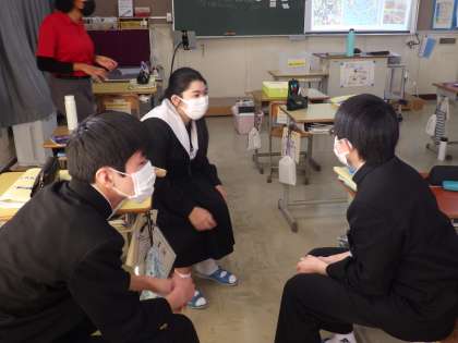 3年生の英語の授業の様子です。今日は、ALTとのコミュニケーション活動の日です。