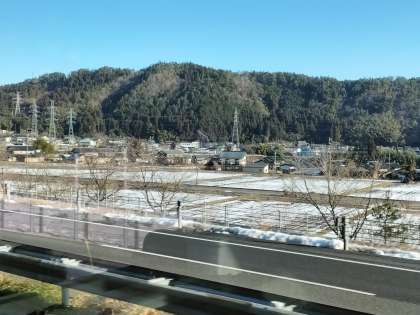 東海北陸自動車道から見える景色も、次第に雪が多くなってきました。